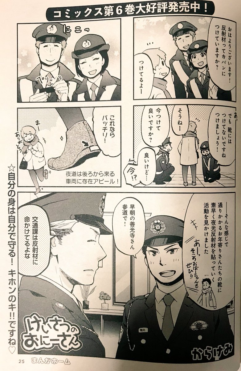 まんがホーム1月号、今月2日に発売されてます!今回のけいさつのおにーさんは交通課のお兄さんとお姉さんが初登場!桜井さんの学生時代のことも少し出てきます。よろしくお願いいたします!