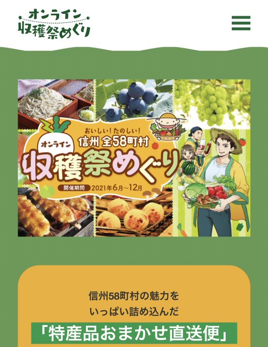 28 56 >RT オンライン収穫祭めぐり、キャラクター描きました! 帰省出来なくて食べられなかった特産品、今こそ買っちゃおう😊 machimura-nagano.jp/online-syukaku… 21/07/10 10:59