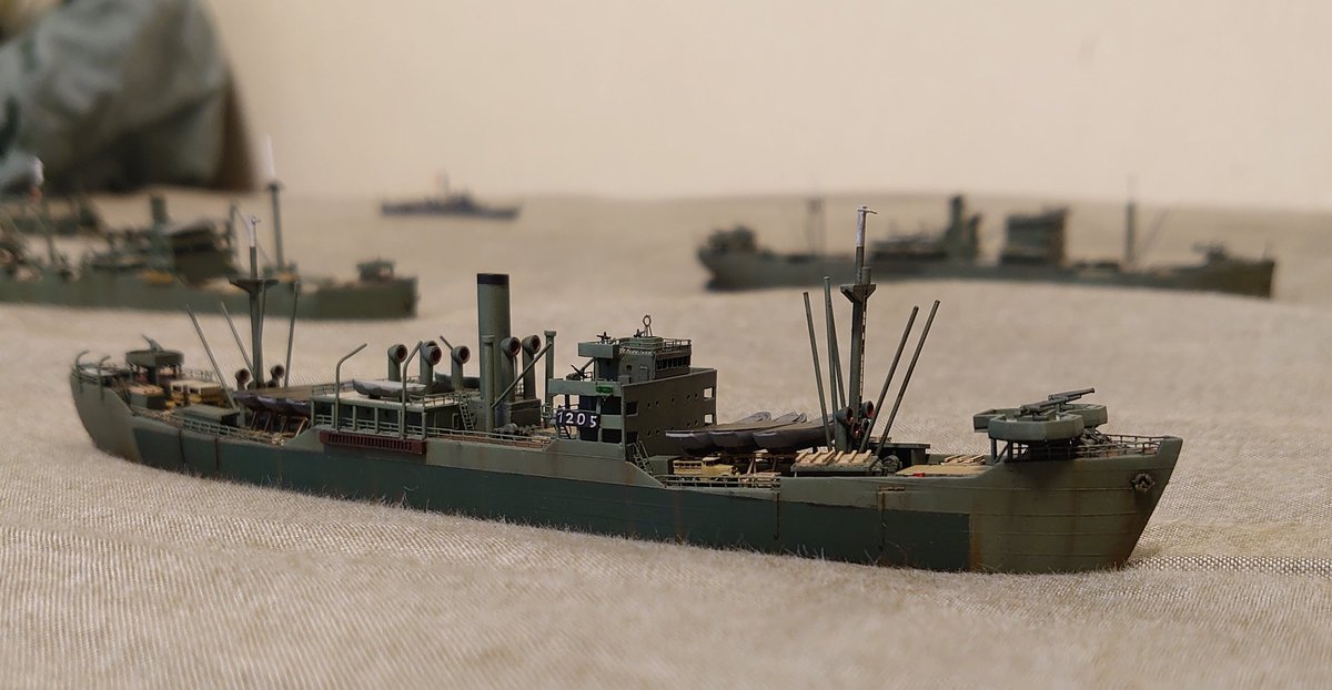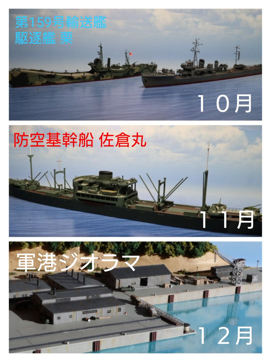 23 78 #今月作ったプラモ晒そうぜ 今月は駆逐艦「栗」と、二等輸送艦「第159号輸送艦」の2隻でした! 11月は地道に進めてる港湾ジオラマを完成させたい! 18/10/31 16:41