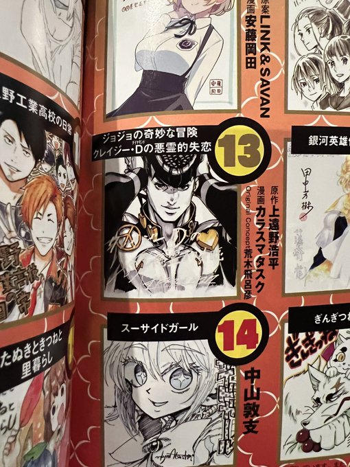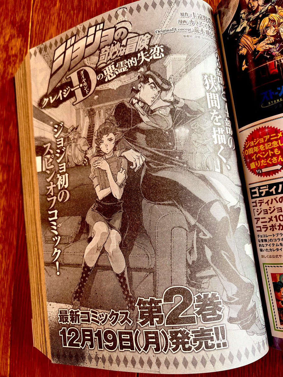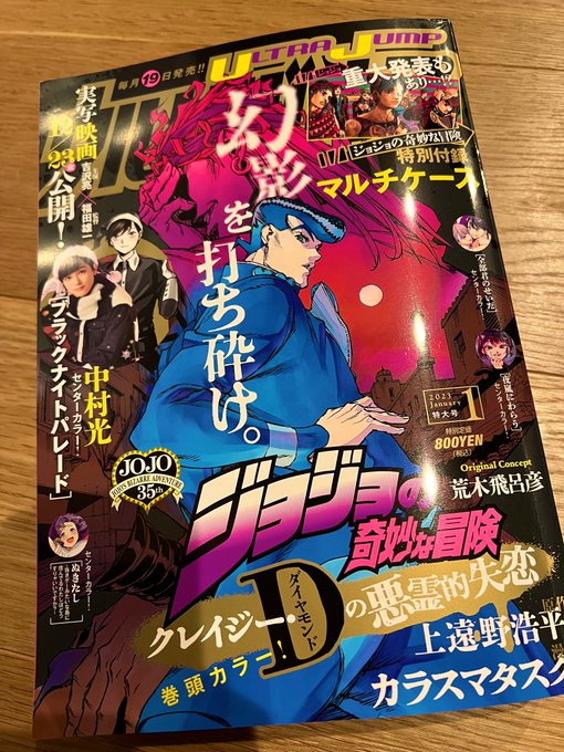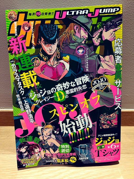 宣伝続きになりますが、本日発売のウルジャン1月号よりジョジョスピンオフ作品『クレイジー・Dの悪霊的失恋』の連載がスタートします!皆大好きなキャラ達が登場するので、その辺り楽しんで頂ければ嬉しいです。どうぞ宜しく!