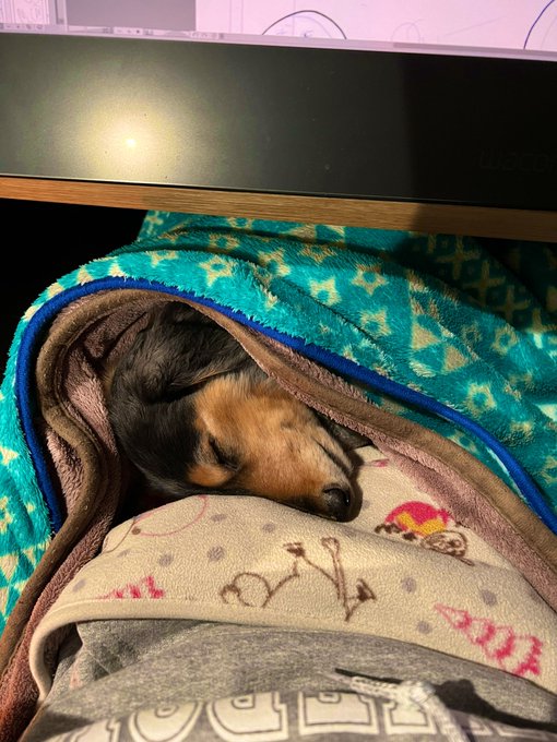 46 596 仕事中ずっとこんな感じ。乗せないと怒る。十年間ずっと膝に乗せながら原稿描いてる 22/01/31 04:27