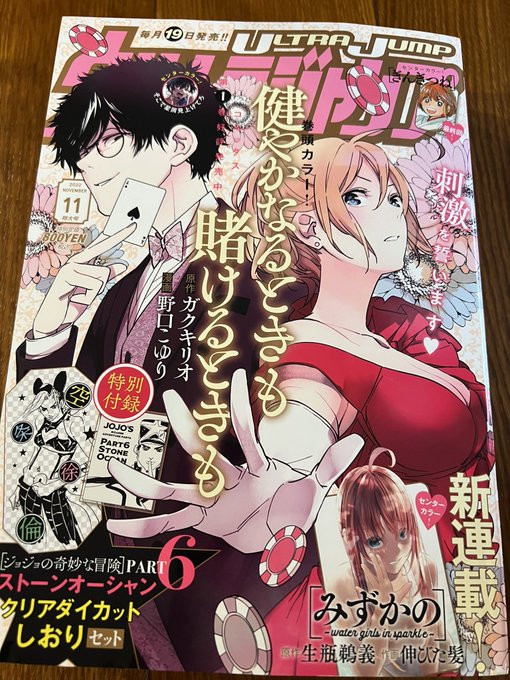 101 525 ウルジャン1月号発売中です!今月は表紙と巻頭カラーも描かせて頂いたので観て頂けると嬉しいです。 あと抽選での色紙プレゼント企画もあるようなので、気が向いた方はそちらもご応募よろしくお願い致します! 22/12/19 17:09