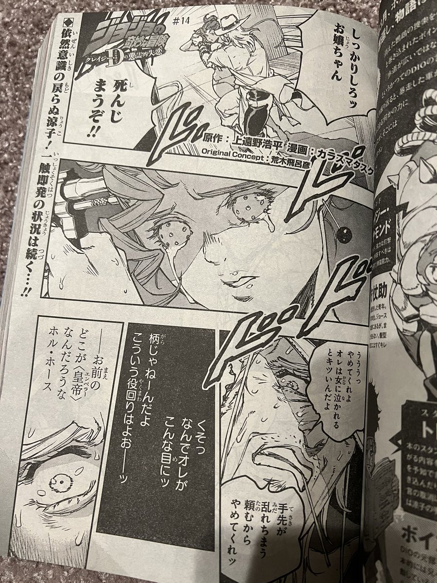 986 3238 宣伝続きになりますが、本日発売のウルジャン1月号よりジョジョスピンオフ作品『クレイジー・Dの悪霊的失恋』の連載がスタートします!皆大好きなキャラ達が登場するので、その辺り楽しんで頂ければ嬉しいです。どうぞ宜しく! 21/12/18 14:42