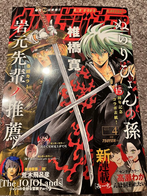 191 1919 ウルジャン3月号発売中です! 悪霊的失恋13話掲載されております。 そしてジョジョ9部連載開始おめでとうございます!! 9部Tシャツの懸賞に応募しようとすると悪霊的失恋のページを開いてしまう素敵仕様なのでその流れで読んで頂けると嬉しいです。どうぞ宜しく。 23/02/18 15:57