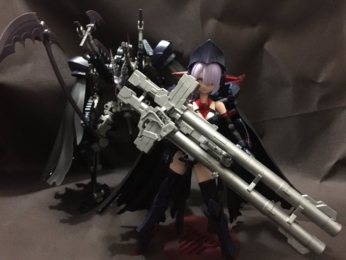 3 24 エクスキューショナー コンバートボディとの組み合わせ 武器を十字架に見立てて持たせています コンバートボディの方は手足を伸ばしてスカルマサカーの武器を盛り盛りにしてみました マントよりも悪魔っぽい羽根が欲しいです #コトブキヤ #メガミデバイス 22/10/21 19:21