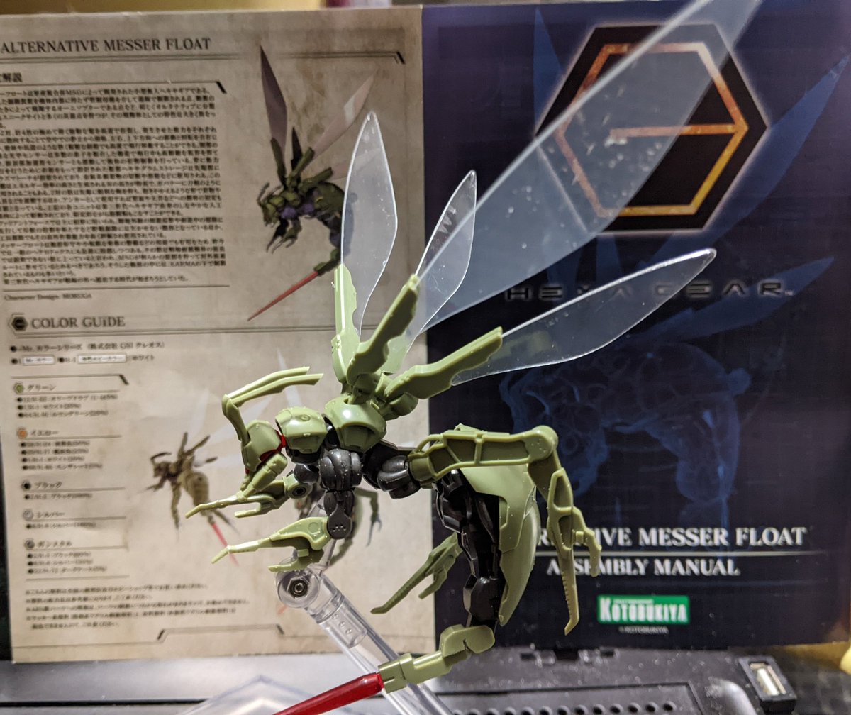メッサーフロートを組んでみました 分解したメッサーフロートをつけて、バーゼラルドのフェアリーバージョンとなりました ファンタジーや某ロボアニメに登場する妖精っぽいものが作れるかもしれません #コトブキヤ #ヘキサギア #FAガール #メガミデバイス