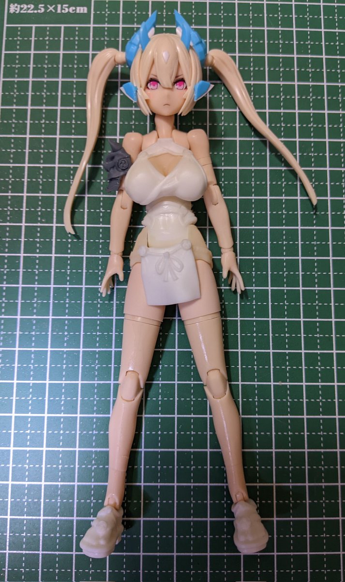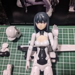 3 39 なりきり忍者せっと あまり複数のキットを使いたくないので素体を朱羅忍者蒼衣から金潟すぐみに変更しました 上半身は仮でMSGのトップスセット スキンカラーAです 足りないのは左腕のスペーサーとなります #コトブキヤ #メガミデバイス 23/06/06 19:15