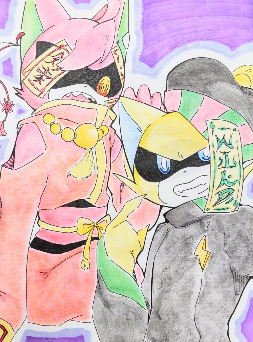 ウミネコさん(@taizyu_inthasky )の紅丸とワイルドボーイの描かせていただきました✨ ちょいと御札のとこをアレンジしました twitter.com/taizyu_inthask…