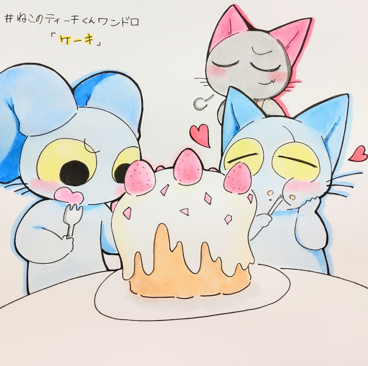 #ねこのティーチくんワンドロ 【 ケーキ 】 制作時間:1時間と15分オーバー コバヤシくん特製いちごいっぱいケーキ