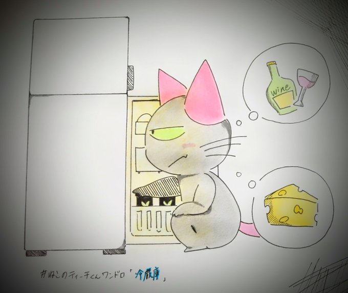 #ねこのティーチくんワンドロ 【 冷蔵庫 】 制作時間:55分 楽しみはひとりで