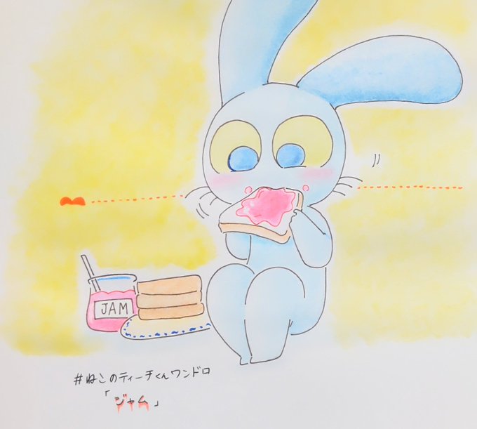 #ねこのティーチくんワンドロ お題【 ジャム 】 制作時間:1時間+5分オーバー ジャムのせたトーストって美味いよね