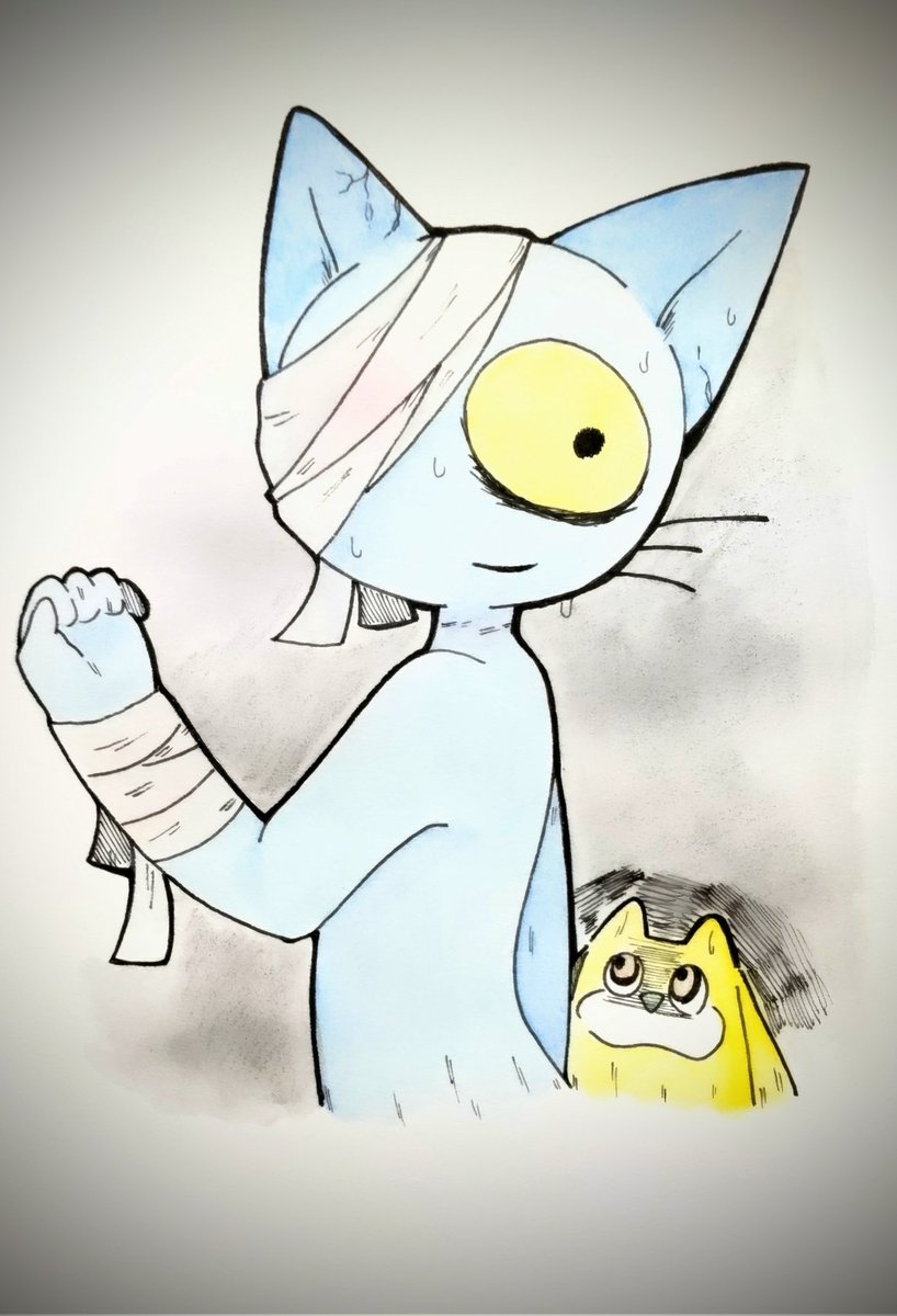10 120 #ねこのティーチくんワンドロ お題【 包帯 】 制作時間:1時間ちょい ちょい病み気味ティーチくん 22/08/19 22:29