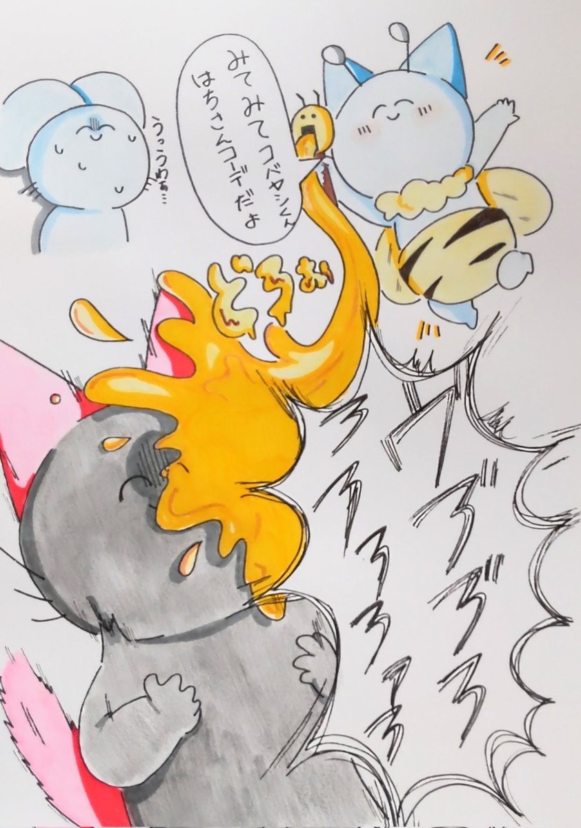 #ねこのティーチくんワンドロ お題【 はちみつ 】 制作時間:1h+45mオーバー 色薄くてゴメン。 お題からかけ離れたものができてしまったかもしれない