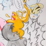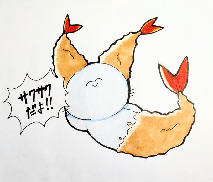 #ねこのティーチくん 久々にしっかりした(?)絵が描きたかったのでリハビリがてらサムくん(エビフライのすがた)を描きました やはり鈍っておる