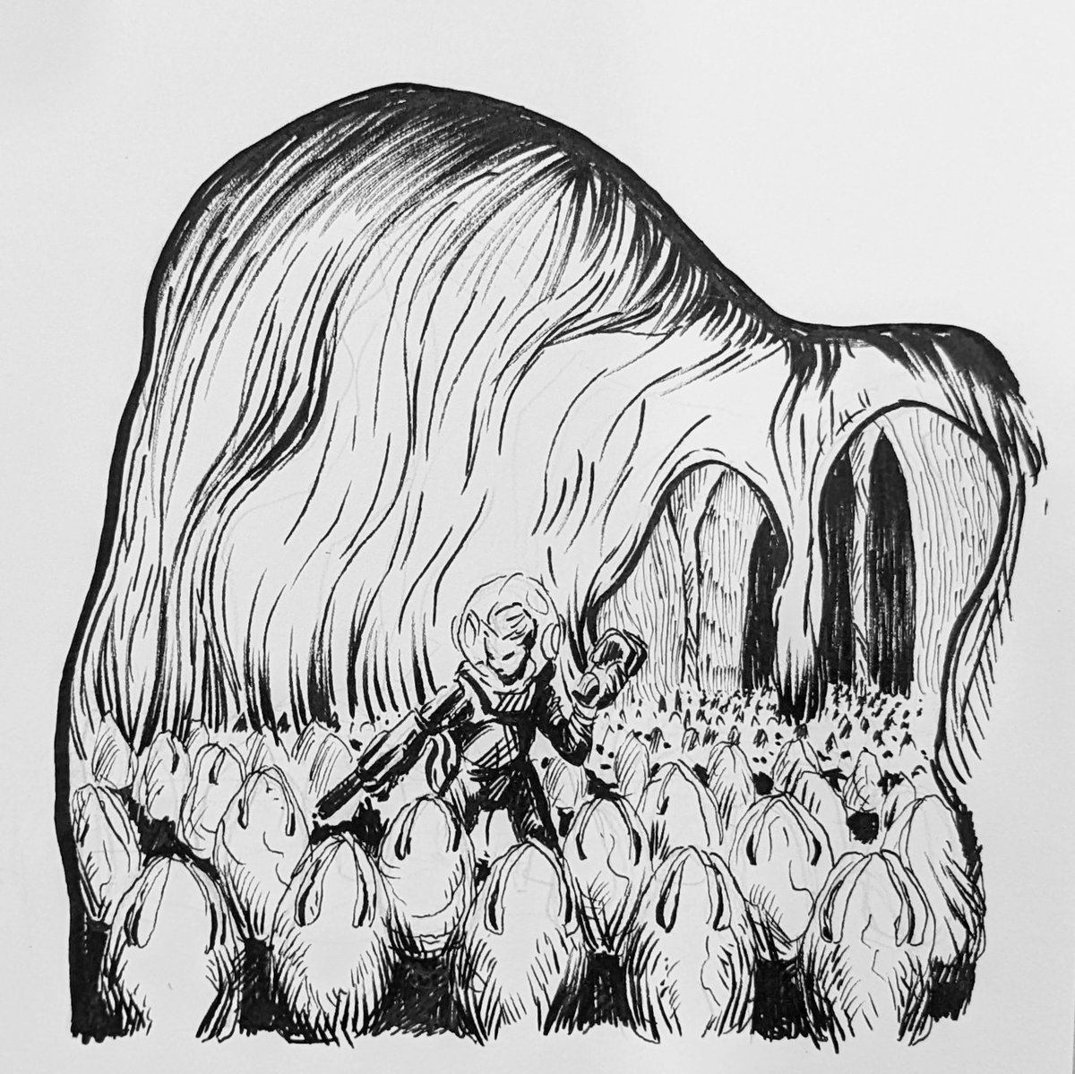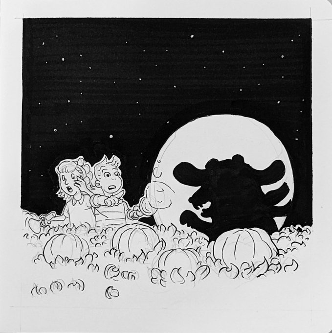 0 1 And lo, the great pumpkin arose from an eldritch pumpkin #farm, a shambling visage beyond earthly comprehension. #inktober 22/11/01 13:36