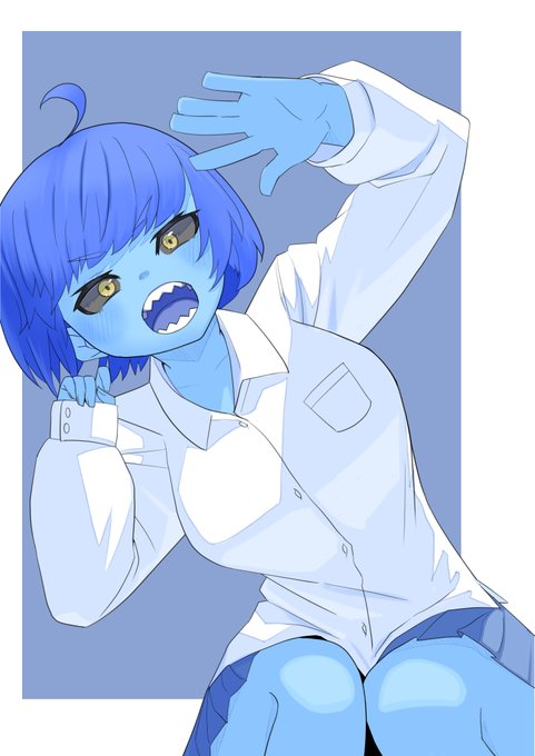 0 6 #イラスト #青肌 #黒白目 うちの子がシルエットでわかるよう特徴追加していきたいです。 23/04/03 01:40