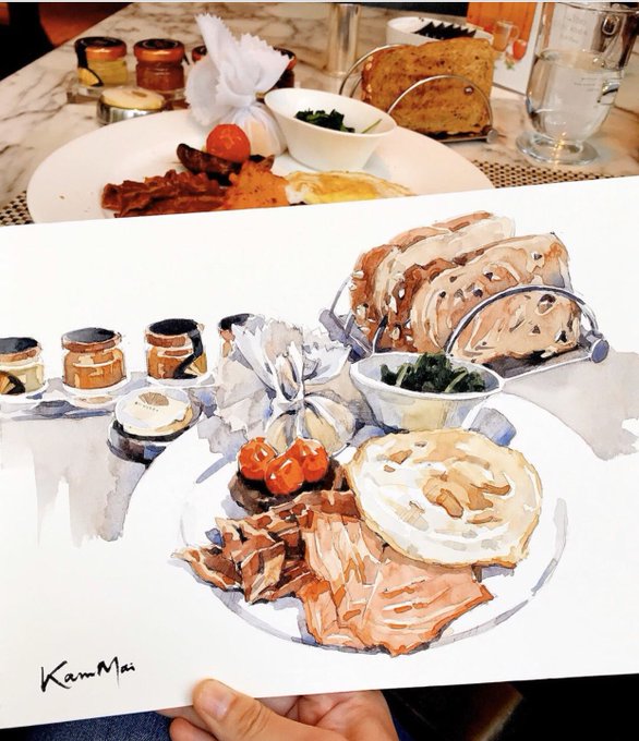 A satisfying brunch at Mandarin Oriental, Hong Kong 😋. @MO_HKG @MO_HOTELS #watercolor #sketchbook #foodsketch #foodillustration #hkillustrator #urbansketchers #usk #watercolorpainting #illustration #interiorsketch #watercolorsketch #hkartist #水彩 #速寫 #일러스트 #수채화