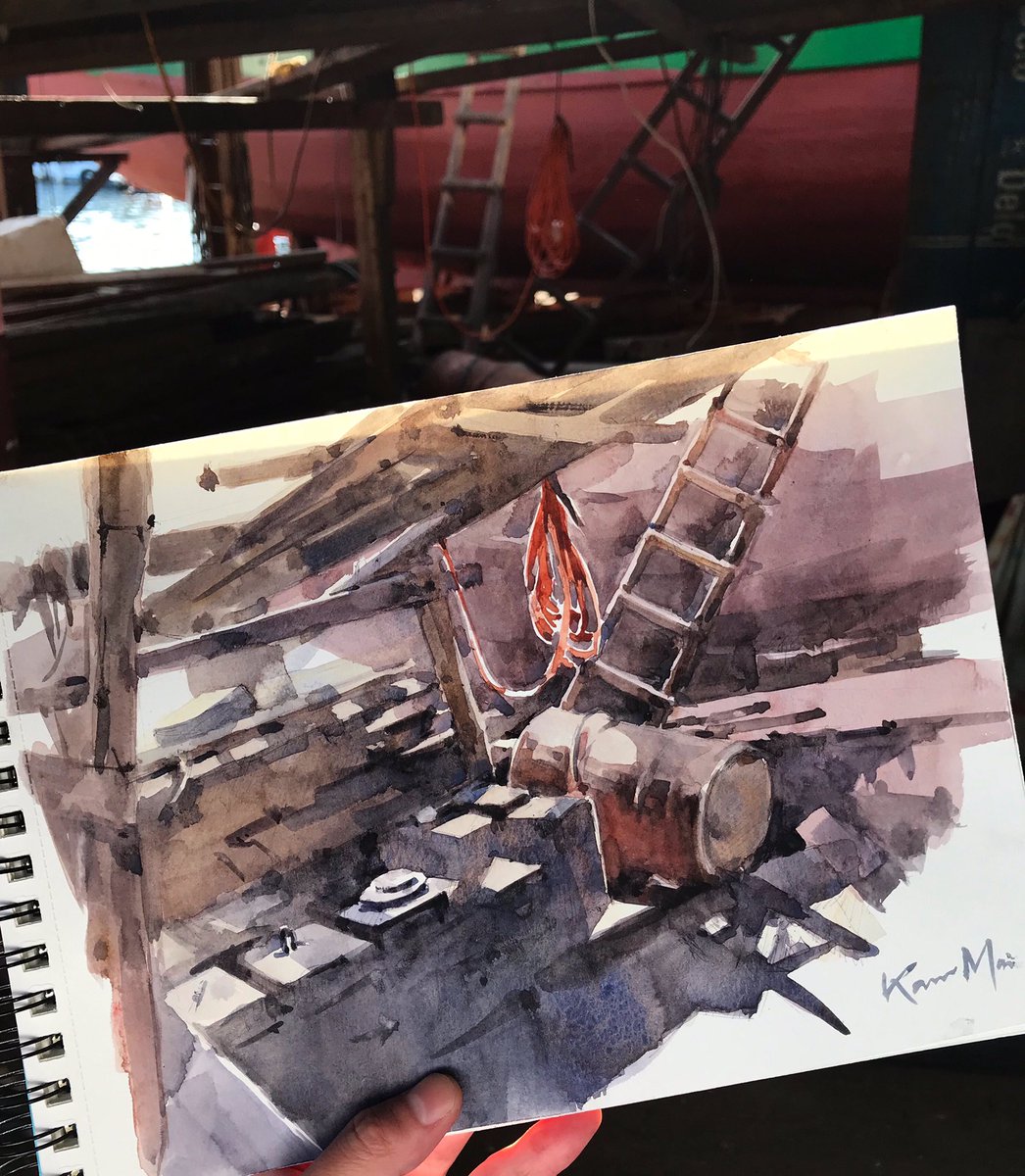 So happy to have sketched on location for the 1st time since Jan. I chose this little corner at the shipyards. Beautiful place. Beautiful day. Couldn’t ask for more. Wong Chuk Hang, HK. #watercolor #sketchbook #urbansketchers #usk #watercolorpainting #水彩 #建築 #速寫 #수채화