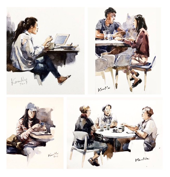 One of my favourite things to do in cafes is watching and sketching people. In October we’ll have a live online workshop on people sketching. Message for details😊#watercolor #peoplesketch #sketchbook #watercolorartist #urbansketchers #usk #watercolorsketch #hongkong #水彩 #速寫