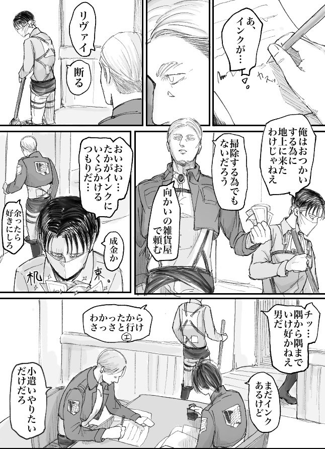 絵も文字も描/書かれる天才の背骨さま@sebone_aot からアートチケット🎫いただきました!ありがとうございます!!どのご作品もリバイがエルビン大好きで、エルビンも存分にリバイを大切に愛してて全部最高なんですよね😭💕最近なんも描けてないのですが、恐れ多いながら行かせていただきます🔥
