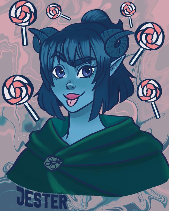 Next up is Jester, who is a tiefling cleric of the Traveler. One of my favs 🍭💖 #CriticalRole #criticalrolefanart #jesterlavorre