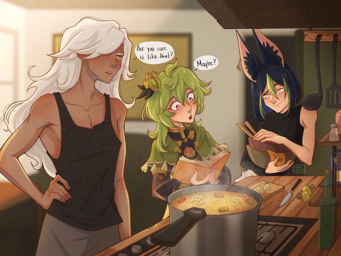The family cooking…or at least they try 🍄 #cynonari #cyno #tighnari #genshin #genshinfanart #GenshinImpact