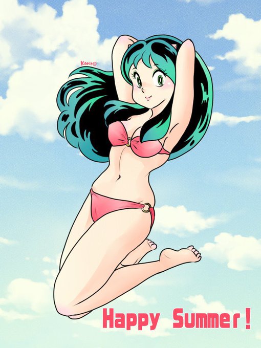 暑中お見舞い申し上げます🌴 コミックス5巻「哀愁でいと」扉絵の水着ラムちゃんです。 #うる星やつら