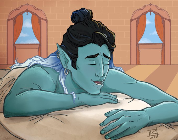 Nervous bards deserve their spa days and I’m glad this boy got his. Thank you @robbiedaymond for the wholesome gift that Dorian is to this campaign. #CriticalRole #criticalrolefanart #dorianstorm #CriticalRoleArt