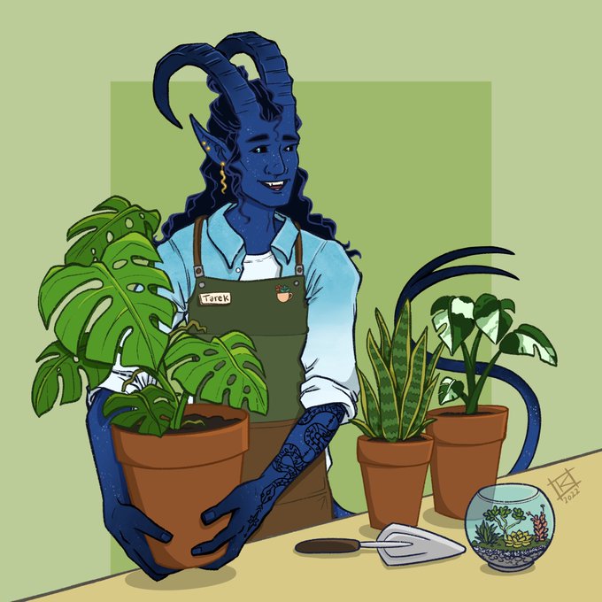 Flower shop/tattoo shop AUs are always grade A content 👌🌸 My soft bard boy that loves to sing while he works #DnDcharacter #dndart #tiefling #originalcharacter