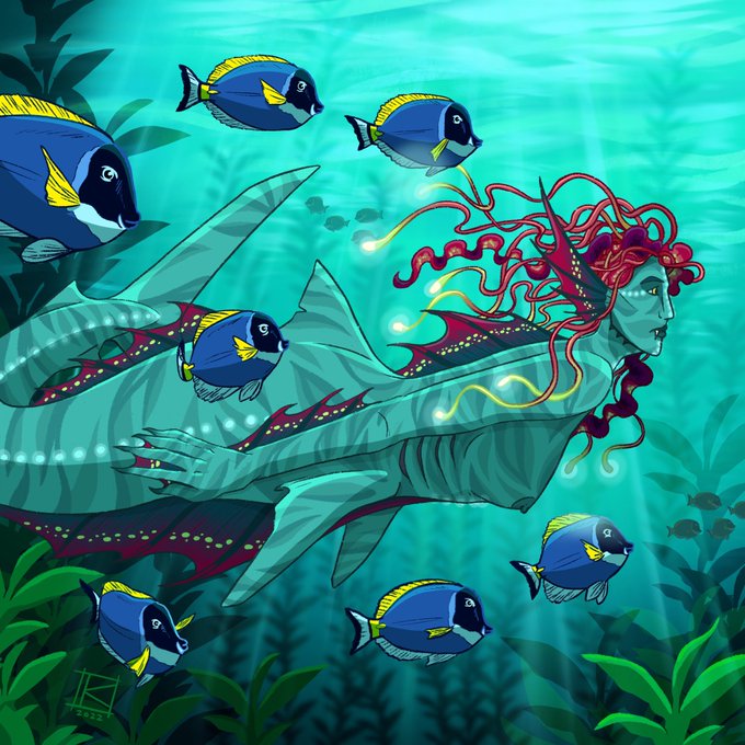 Drew some of my current dnd characters as mermaids for #mermay Pyrrha just had to be a shark #originalcharacter #dnd #mermay2022