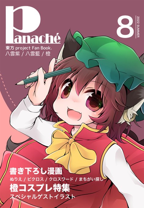 37 64 C100新刊[Panaché] 八雲家4コマ・ぬりえ・ピクロス・クロスワード・まちがい探し・コスプレ橙ちゃん・リクエストイラスト(ピクピクン先生)という情報量多い内容になってます!!!よろしくお願いします! 22/08/11 22:47