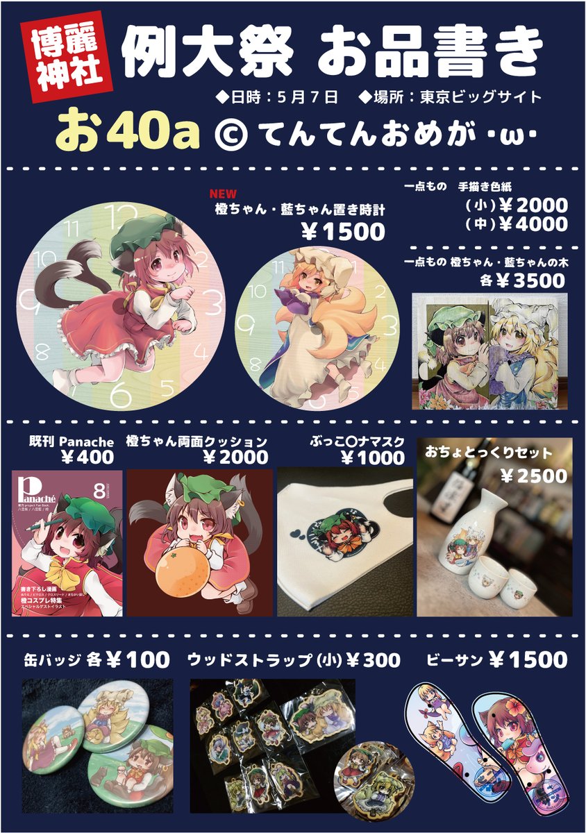 お品書き出来ました! 5/7例大祭20 【お40a】 てんてんおめが・ω・ 遊びに来てくださいましー。よろしくお願いします!!!!!!