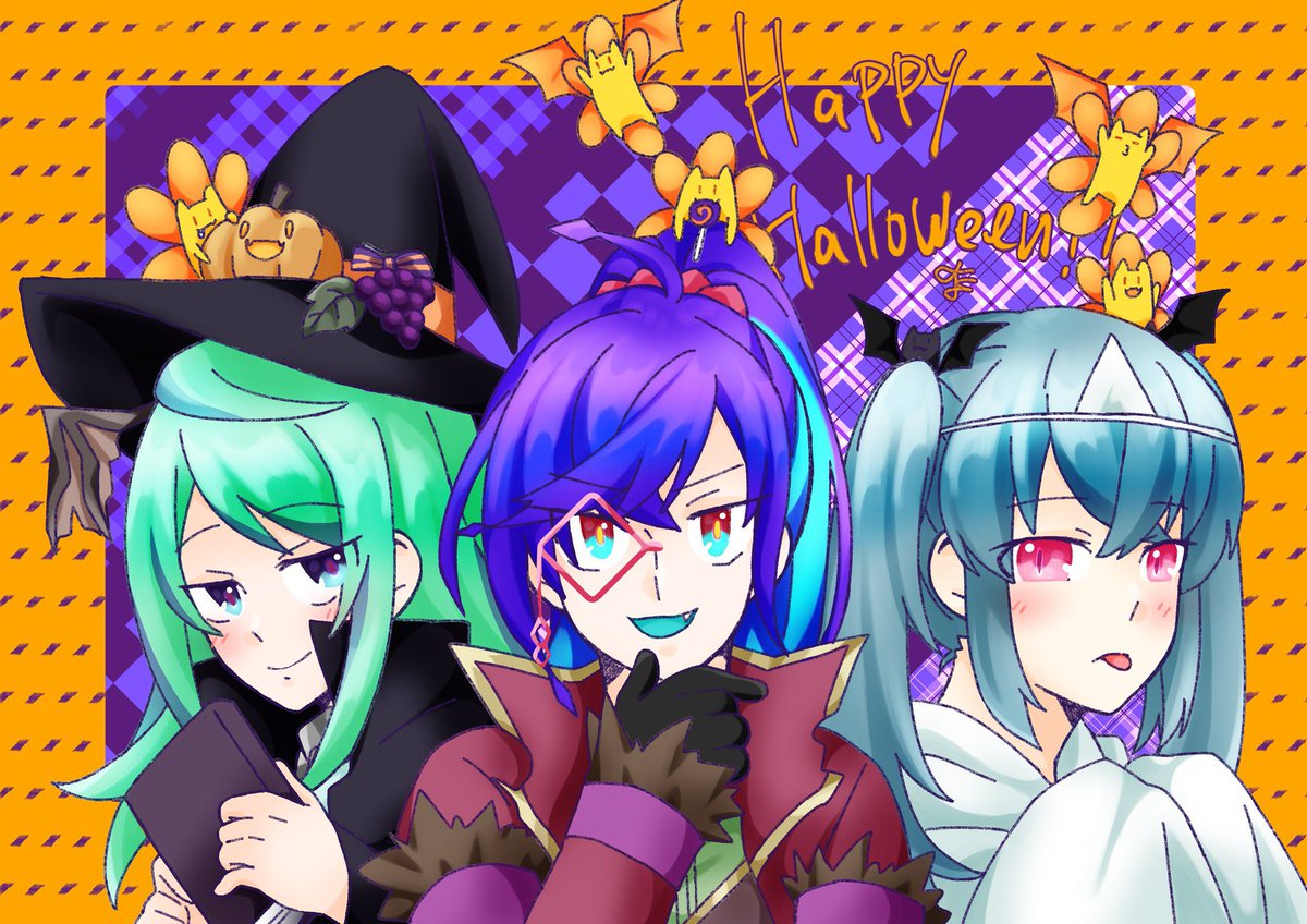 #Halloween2022 ハロウィン絵完成しました~!!(FG) 今年はヒュリアーが爆誕したので、前からお手軽ハロウィン()だったディテイエとルナも加えて蝙蝠兄妹で描きました~!!オマケにフラデビも添えて🦇 当日までに間に合って良かった……。 ついでに蝙蝠兄妹の説明も作りました。 はぴはろ~!!🎃✨
