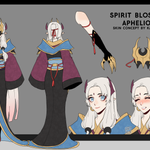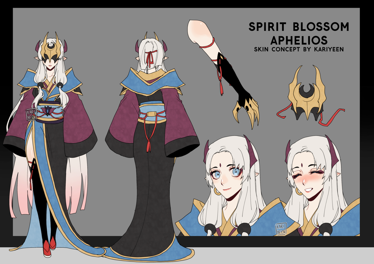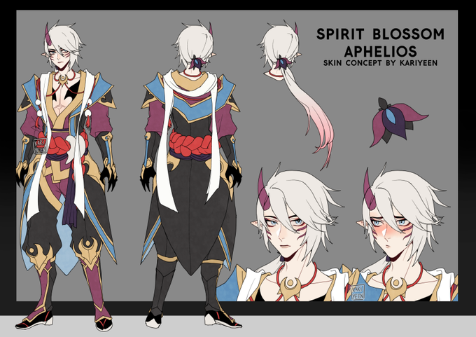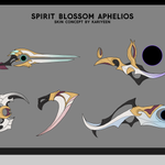 Here's the designs for my Spirit Blossom Aphelios! I drew Alune and the weapons too. #LeagueOfLegends #ArtofLegends #Aphelios