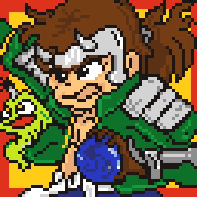 中途半端で放置してたので仕上げた。128は目が痛くなるから辛い。iPadでやりたい。 ワタル新作続きみれてない。 芦田さんの画集欲しい。 #魔神英雄伝ワタル #忍部ヒミコ #pixelart #ドット絵