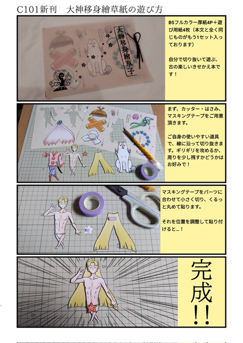 8 13 新刊の「大神移身繪草子」 頒布価格400円 謎に2セット組です! 切り損じても安心ですね! スタンドを作って立てるのも良しです! #C101 22/12/30 10:50