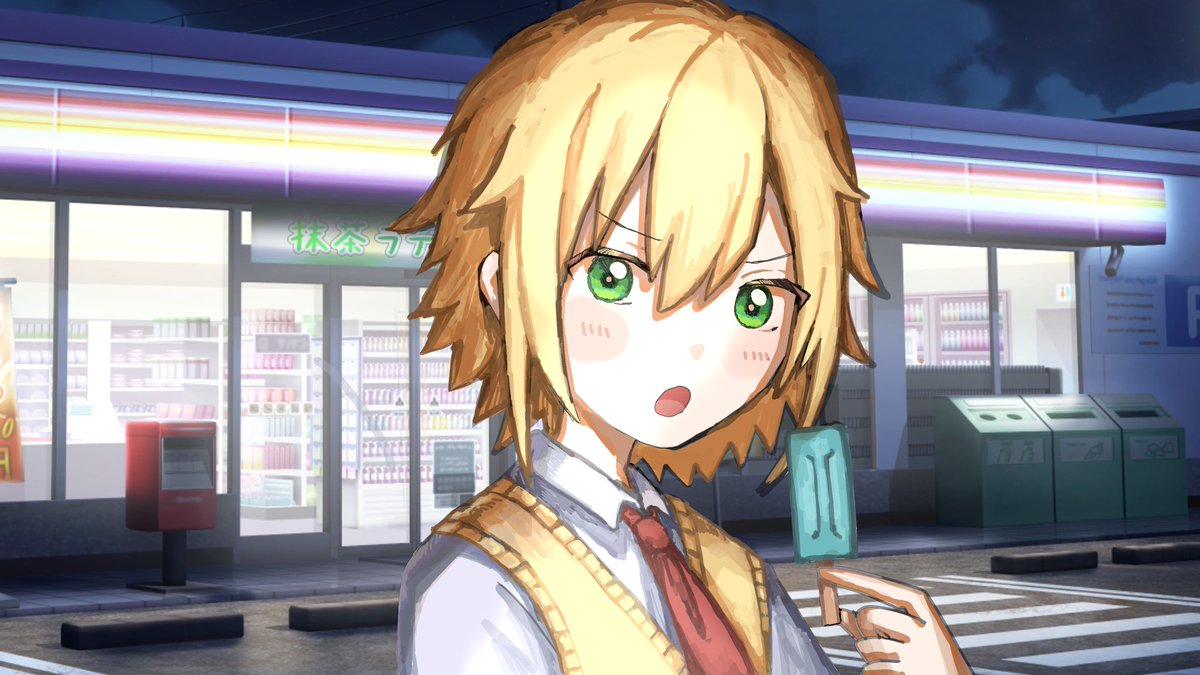 #絵画コウ #サムネコウ 夜のコンビニ前でアイスを食べてるコウです 今日のコウのアイナナ配信見ながら描きました コウとストーリーゲームの相性めちゃくちゃ良すぎるな