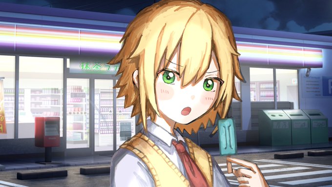 10 98 #絵画コウ #サムネコウ 夜のコンビニ前でアイスを食べてるコウです 今日のコウのアイナナ配信見ながら描きました コウとストーリーゲームの相性めちゃくちゃ良すぎるな 22/08/10 00:11