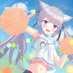 「イエーイ!」 またエルさんが描きたくなった! 9月になったことだから、はやく涼しくなって紅葉を見れるようになってほしい あとは、この時期は文化祭とかもあるからみんなクラスTシャツ着るよね (肩だし長そでTシャツは完全に私の趣味) #エルイラスト