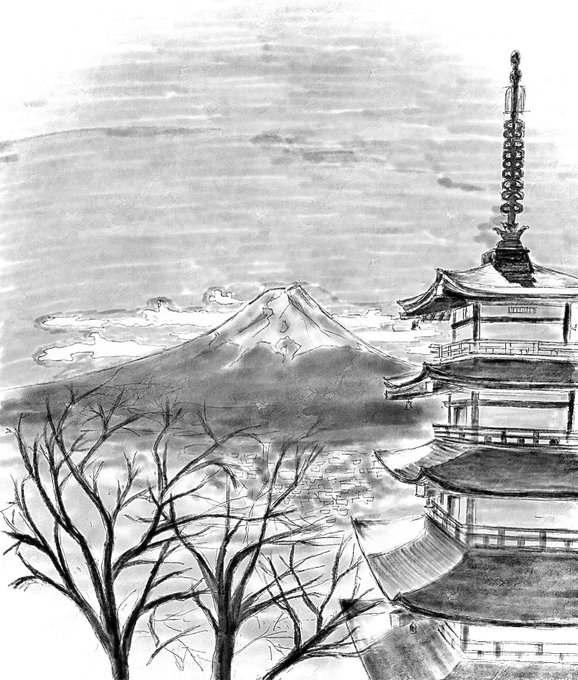 完成。 浅間公園(山梨県富士吉田市)からの景色です。 日本の侘び寂びは、水彩画で表現するのがしっくりくるかなと、挑戦。 でも水彩画、やっぱり難しい🤔 知れば知るほど、奥が深いんだろうな〜 #絵描きさんと繋がりたい
