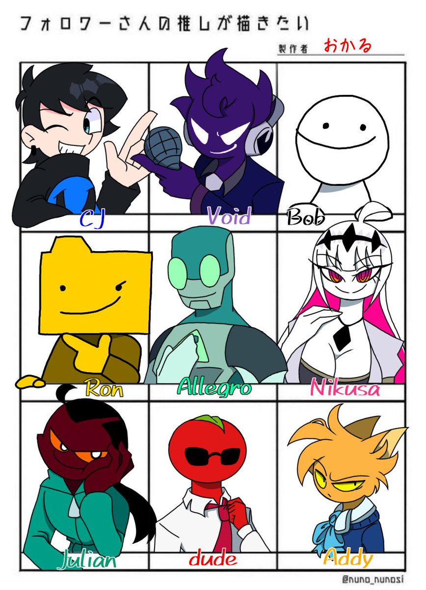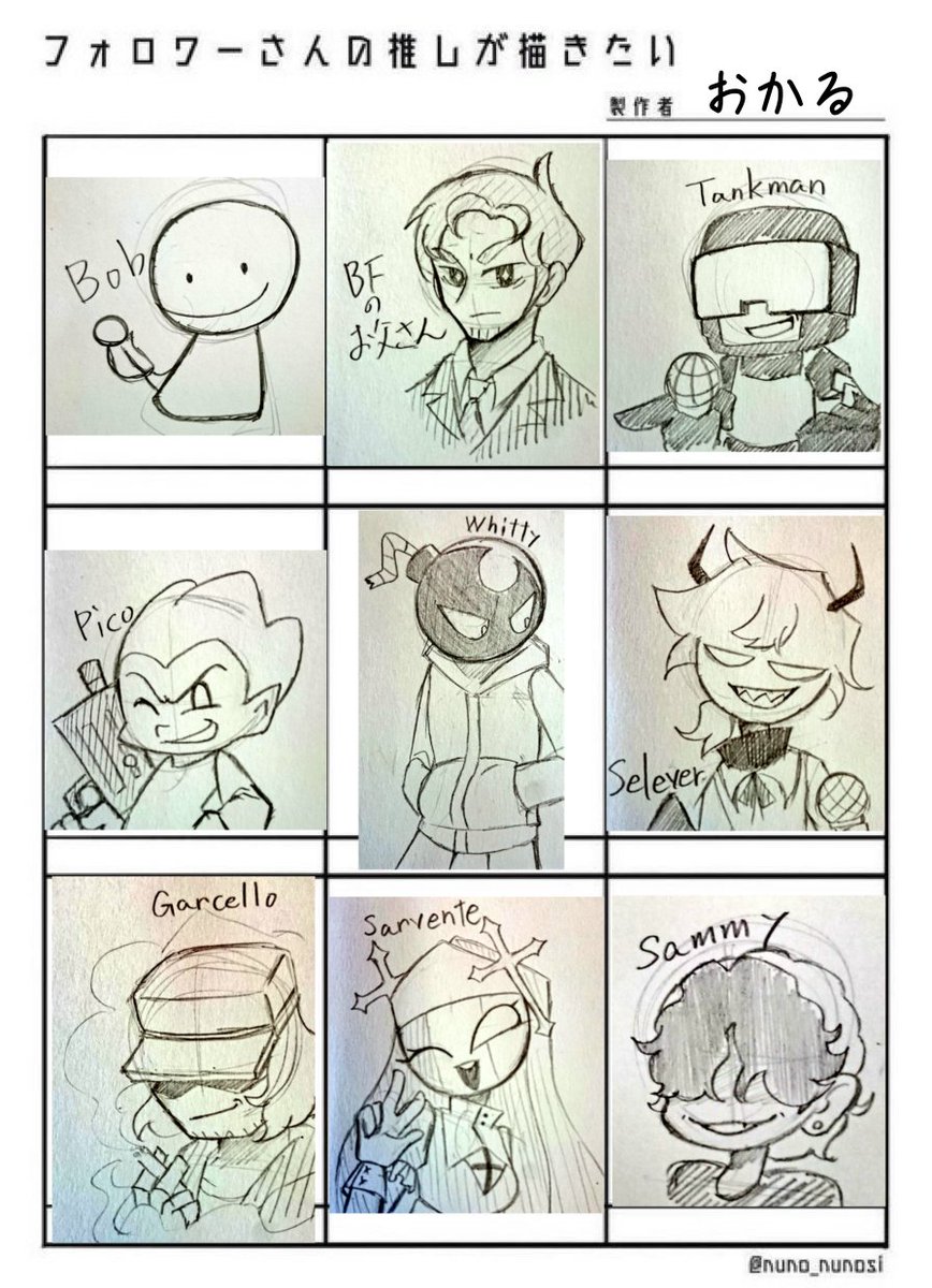 #フォロワーさんの推しが描きたい という事で、フォロワーさんのFNF推しキャラ計9人描かせていただきました! リプにアップにしてるのを3枚ずつ載せてあります