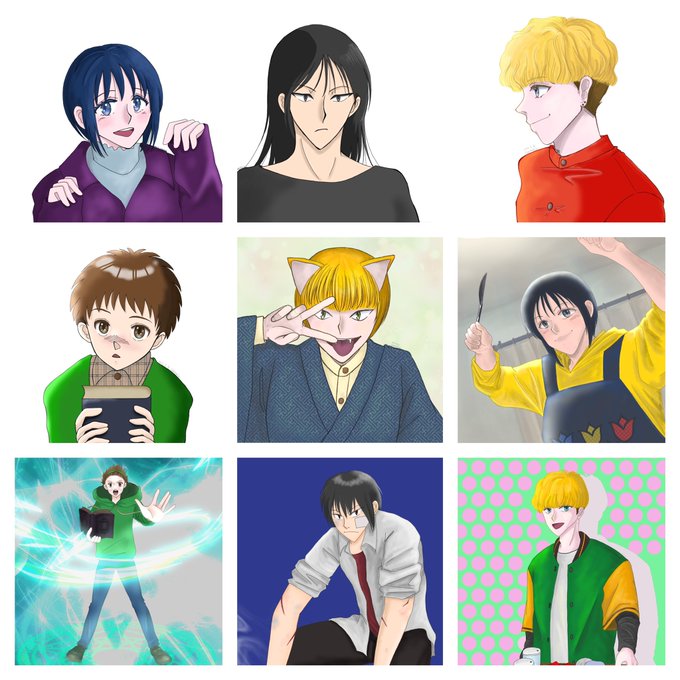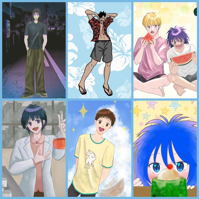 #今月描いた絵を晒そう 週一ペースでしか描けてない💦 なかなかデッサンも出来ないやん😢 マモル君2枚なのは、他のメンバーと比べて癖が少なくて色んなシュチュエーションに対応してくれるから。 ルイさんはやっとお色気担当らしく描けてきた気がする。 来月はもっと描く余裕があるといいな☆