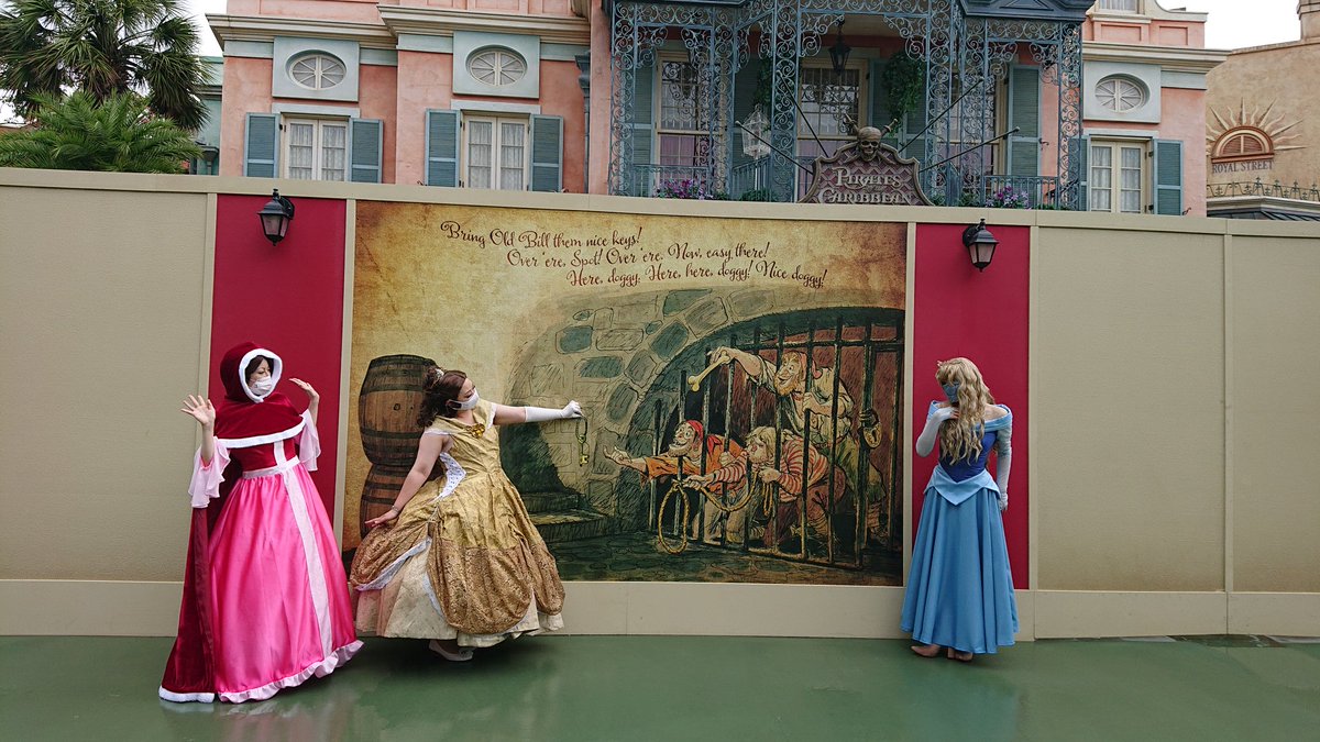 遅報】昨日から稜さんほめさんに遊んで頂いておりました❗20年ぶりくらいにベルのコスしました🤣インパしたら雷雨⛈️停電カオスでしたが貴重な体験でした🏰今日はハコアムでプリンセス併せ&蜀軍師‼️✨あーやっぱり髭落ち着く(*´▽`*)💕稜さんほめさんみるくまさんありがとうございました‼️