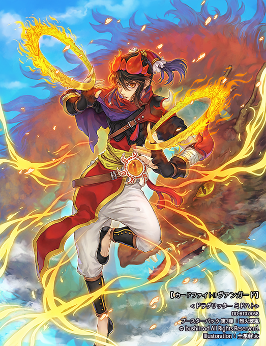 【9/30発売】「カードファイト!! ヴァンガード」 ブースターパック第7弾-烈火翠嵐-にて <ドラグリッター ミドハト> 担当させていただきました! 円月輪なかなか珍しい武器指定で面白かったです お見かけの際はよろしくお願い致します🔥🐲 cf-vanguard.com/tcg/ #ヴァンガード #cf_vanguard