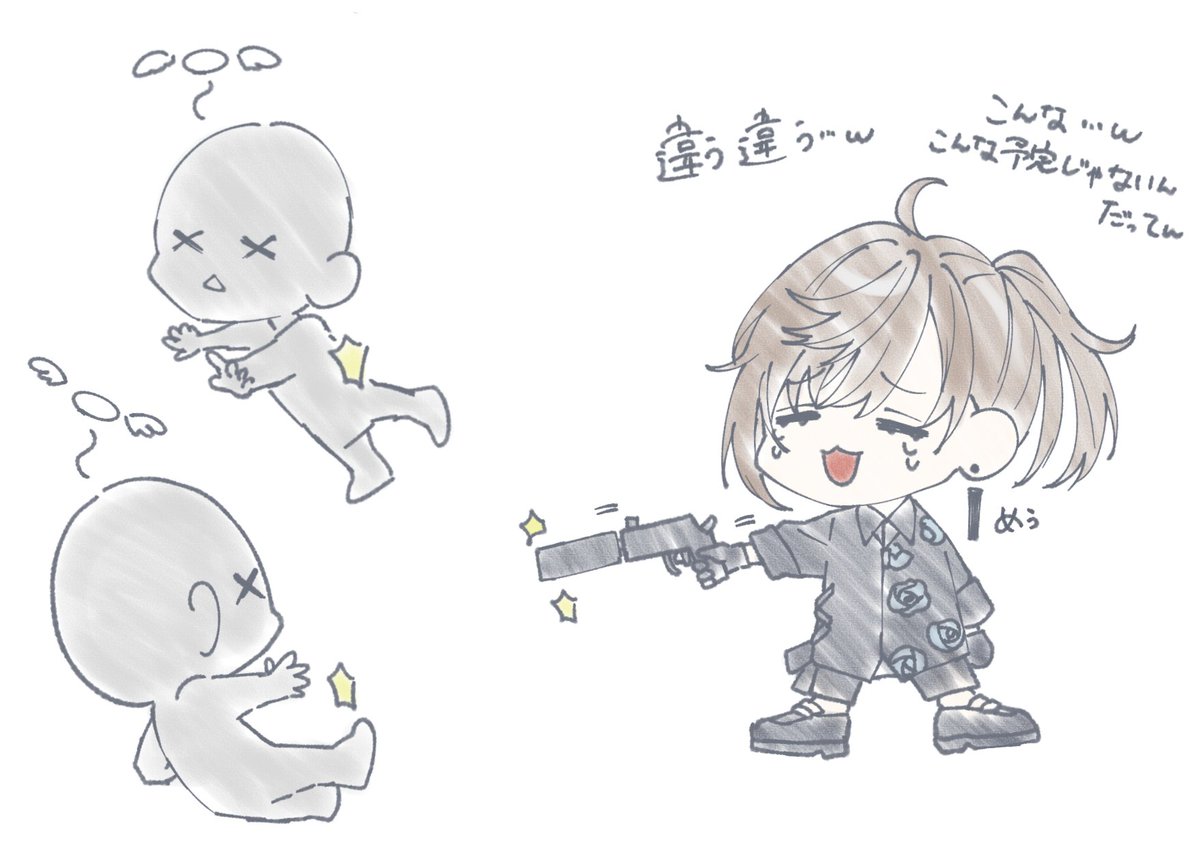 これは華麗にターゲットのみを仕留めたエージェント叶とどうしても大量に葬ってしまうキルマシーン叶 #かな絵