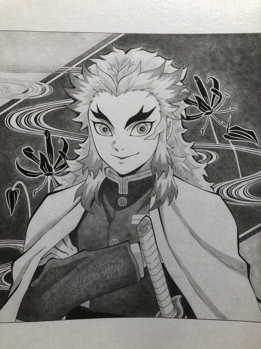 煉獄さんの日ですね❗️ 過去絵で申し訳ないのですが、祝って寝ます(( _ _ ))..zzzZZ #模写 #煉獄杏寿郎誕生祭2022