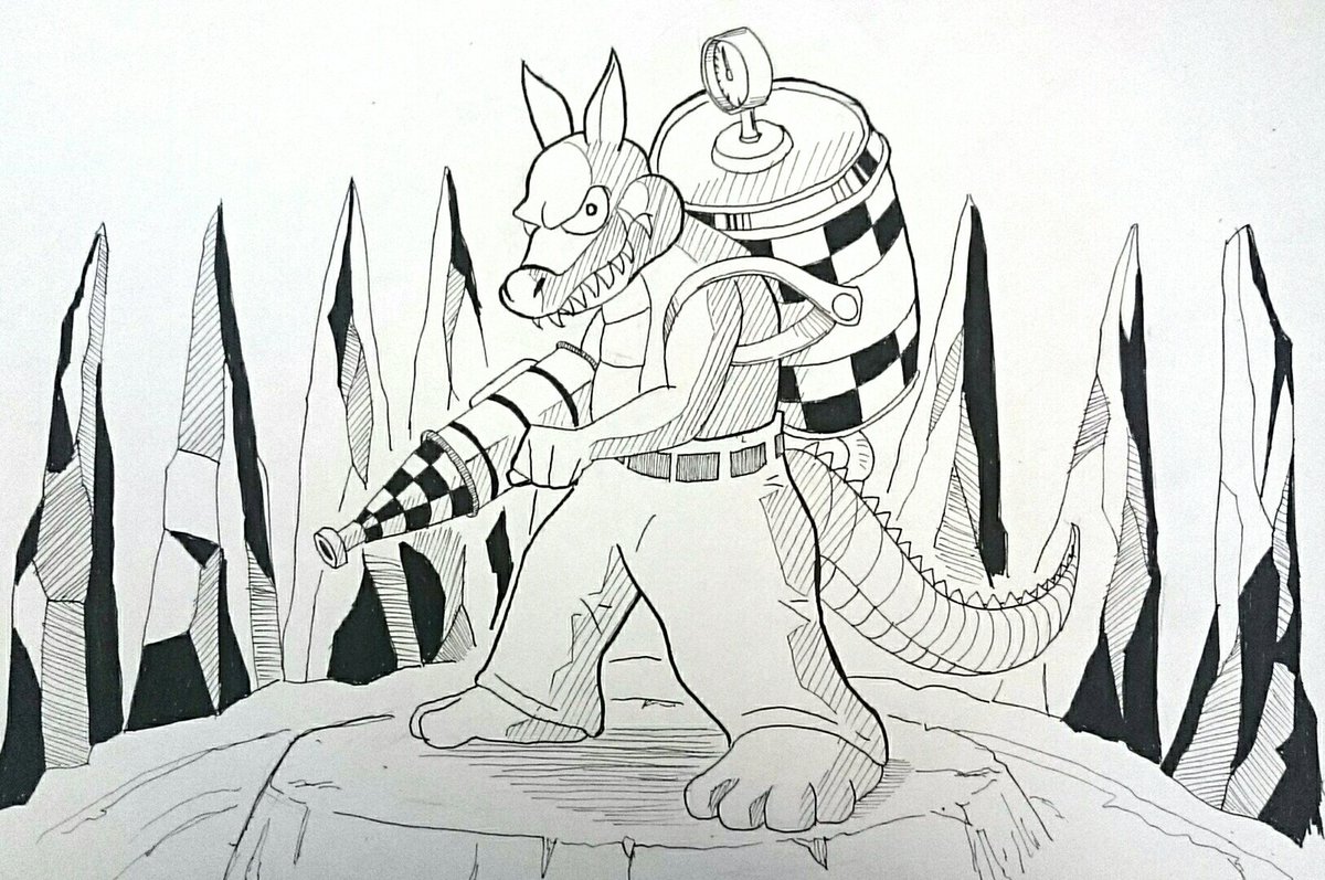 #inktober2018 #Inktober #クラッシュバンディクー 「ロースト」→「焼き肉」ということでディンゴダイル