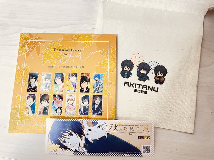 秋たぬオンリー記念イラスト集と巾着届きました! 素敵な御本に参加させていただけて私にとっても本当に記念になりました! 栞も可愛い〜! たぬまくんへの愛がたくさん詰まってるイラスト集を開きながら楽しかったイベントの思い出を振り返ろうかと思います🍁 #秋たぬオンリー2022