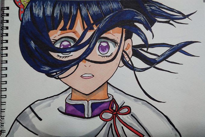 姪っ子リクエストで胡蝶しのぶを描いてみました‼️すこーしだけアレンジして描いてみたんですが難しかった(笑) #鬼滅の刃 #胡蝶しのぶ #鬼滅の刃イラスト #胡蝶しのぶイラスト #イラスト好きな人と繋がりたい