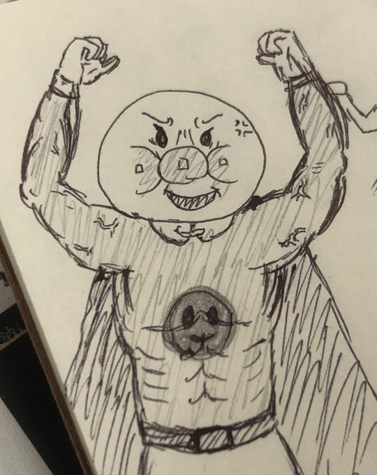 バイ○ンマンが開発した、筋肉成長剤を打ったアン○ンマン #今日の落書き